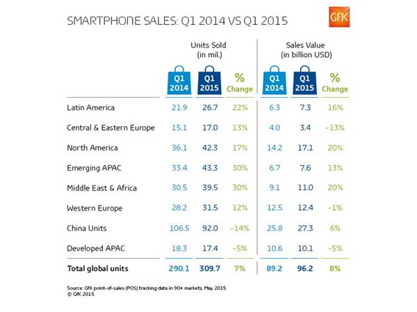• Emerging Markets Lead Smartphone Growth Q1 2015